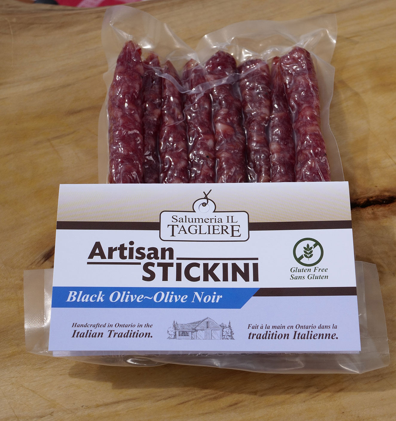 Pork, salt, black olives (potassium sorbate, sunflower oil), sugars (dextrose), sodium ascorbate, spices, sodium nitrite, sodium nitrate, starter culture, garlic powder.