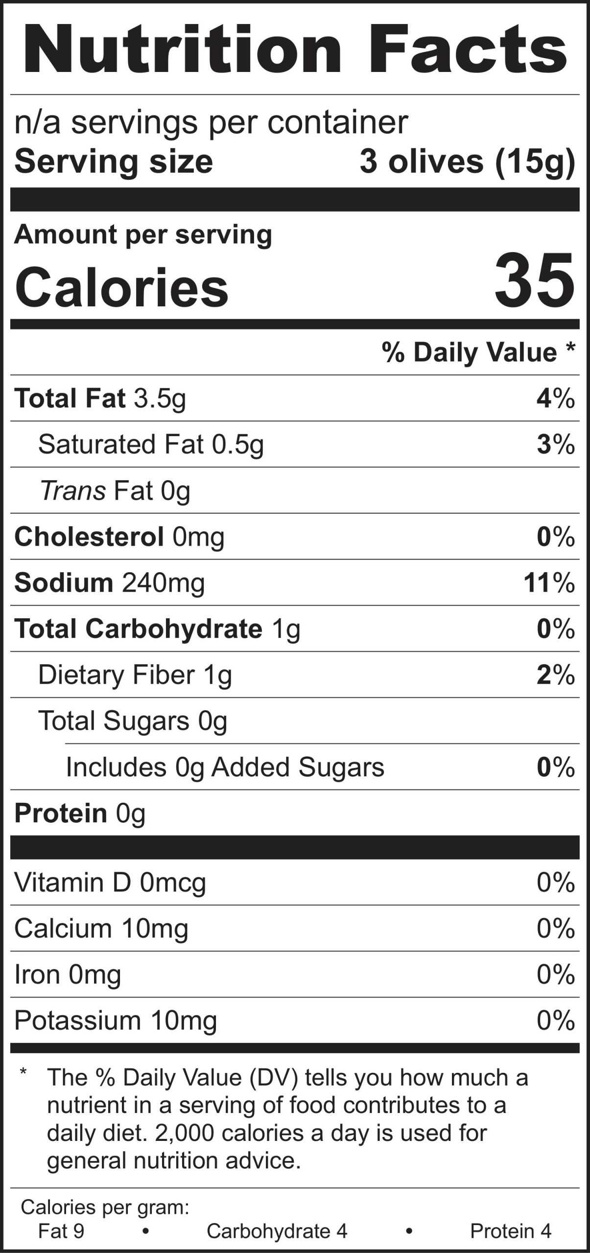 olives, water, sea salt, sunflower oil, citric acid, ascorbic acid, lactic acid.