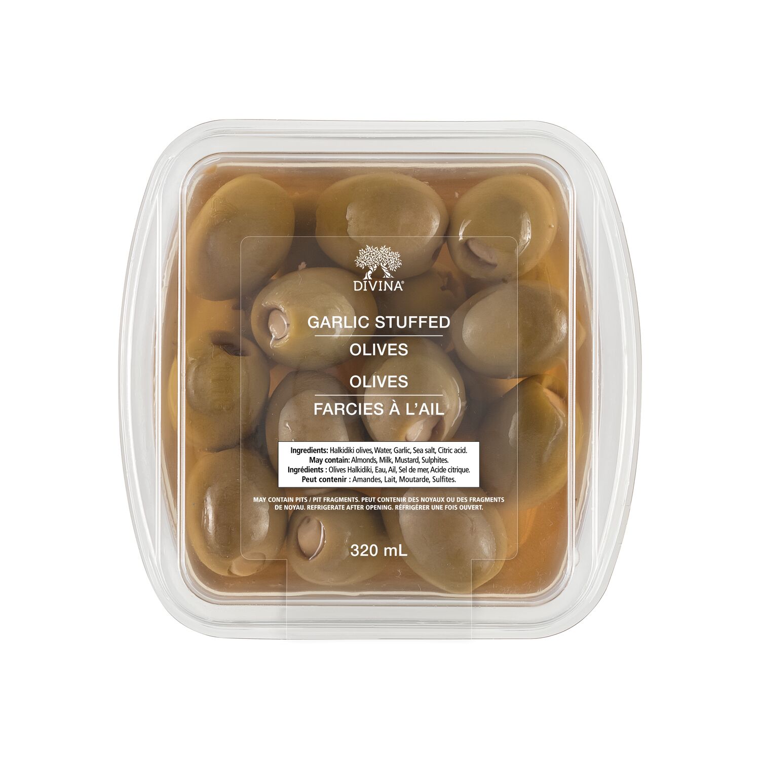 Halkidiki olives, Water, Garlic, Sea salt, Citric acid.