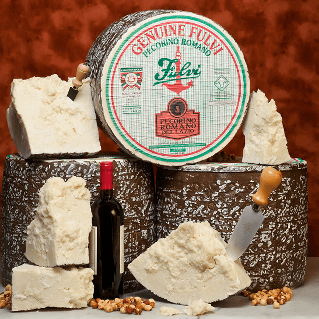 Our flagship Italian cheese, Fulvi® is one of the last remaining Pecorino Romanos still produced in the countryside of Rome. Roman milk is rich in fat and protein, giving the cheese a softness and fluffiness when grated. It is aged a minimum of 10-12 months, much longer than the 5 months required by the DOP. It is robustly flavored without being overly salty, dry, or grainy.