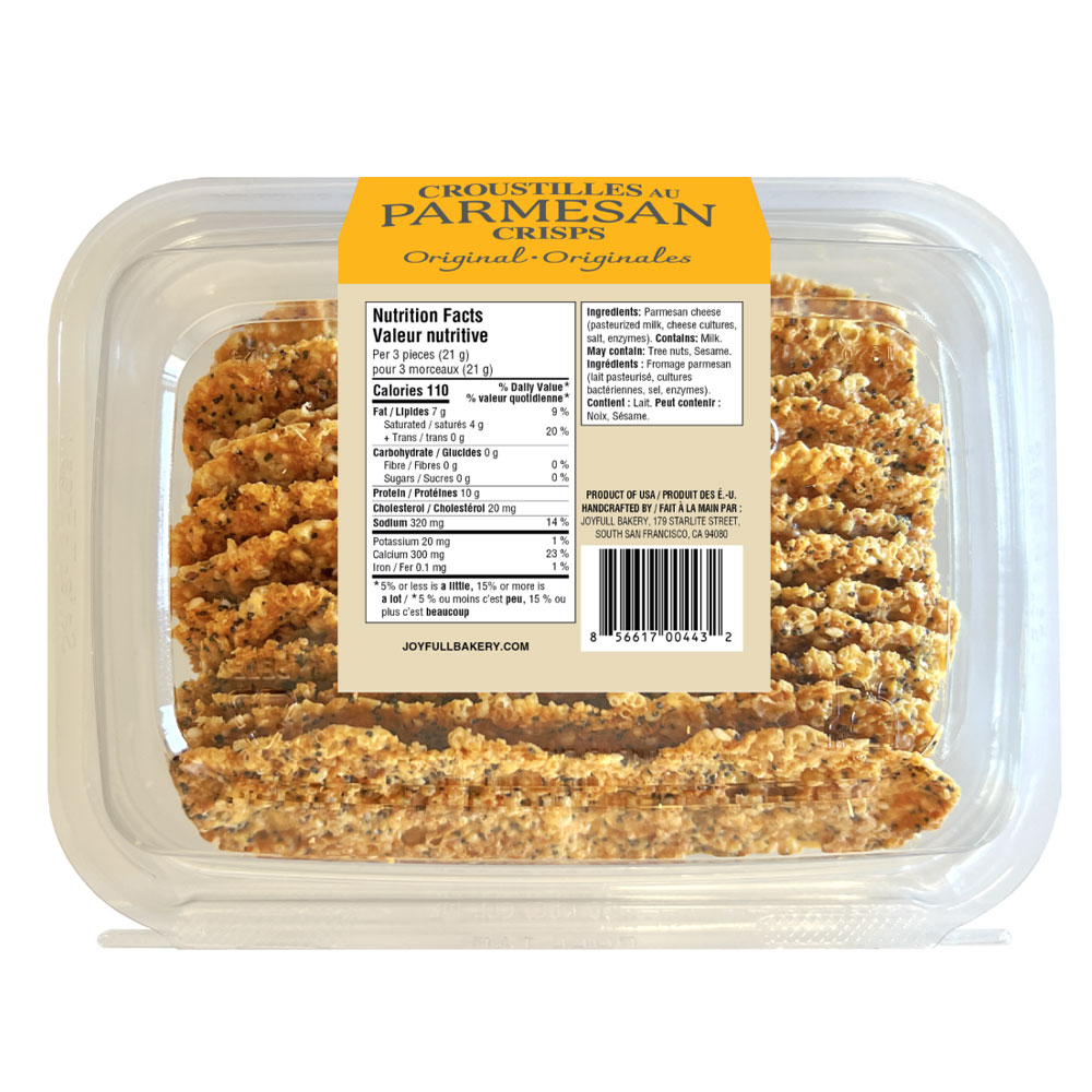 Joyfull Bakery® Original Parmesan Crisps are 100% aged Parmesan…that’s it.