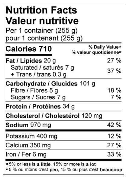 Pasta: Durum wheat semolina, Wheat flour, Water, Liquid whole eggs. Filling: Ricotta soft fresh cheese (whey, milk, salt, citric acid), Toasted wheat crumbs, Parmesan Cheese (pasteurized part skim milk, bacterial culture, salt, microbial enzyme), Milk, Water, Imported hard ripened cheese (milk, salt, microbial enzyme, lysozyme), Imported DOP parmigiano reggiano parmesan cheese (cow's milk, salt, rennet), Canola oil, Asiago cheese shredded (milk, bacterial culture, salt, lipase, microbial enzyme, modified milk ingredients), Whey, Enzyme modified romano cheese, Cheese flavouring preparation (natural flavour, water, sunflower oil, salt, skim milk powder), Salt, Wheat flour, Butter, Modified corn starch, Sunflower Oil, Yeast extract, Parmesan cheese (milk, bacterial culture, salt, lipase, microbial enzyme), Spices, Xanthan gum Contains: Wheat, Milk, Egg.