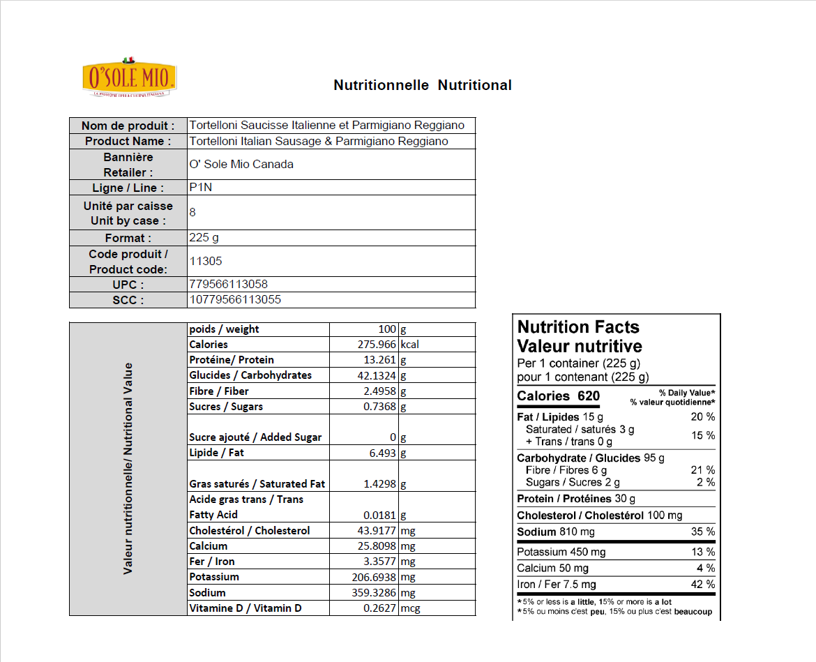 Tortelloni Italian Sausage & Parmigiano Reggiano